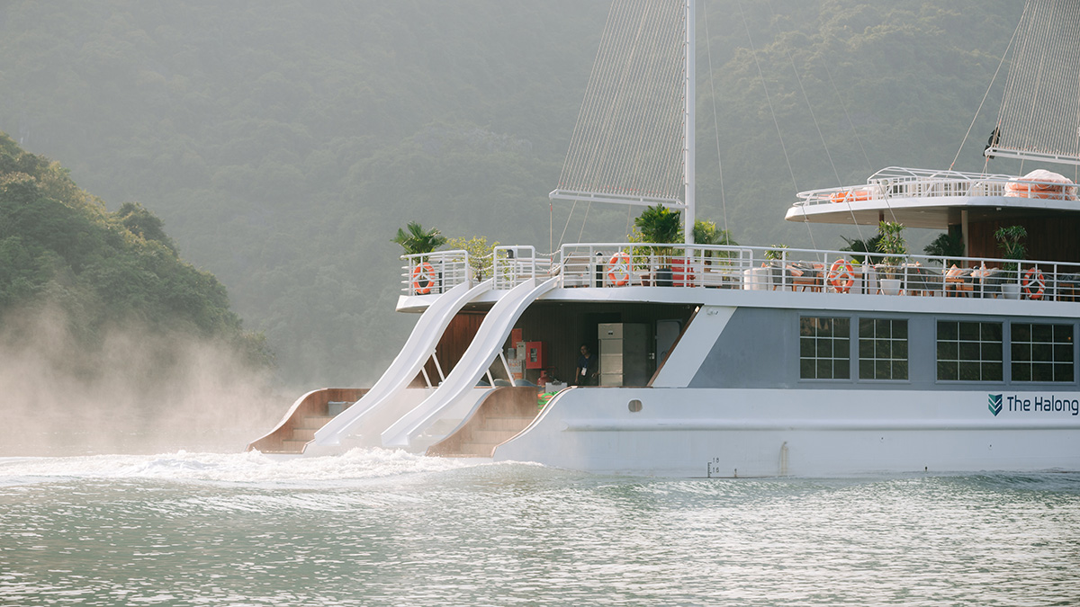 Qúy khách có thể vui đùa trên phao nổi, cầu trượt, bơi lội, hoặc ở lại trên thuyền để thư giãn dưới cảnh đẹp tuyệt vời của Vịnh Lan Hạ. Bạn sẽ tận hưởng khung cảnh tuyệt đẹp và chiêm ngưỡng vẻ đẹp tuyệt vời của kỳ quan thiên nhiên thế giới này.