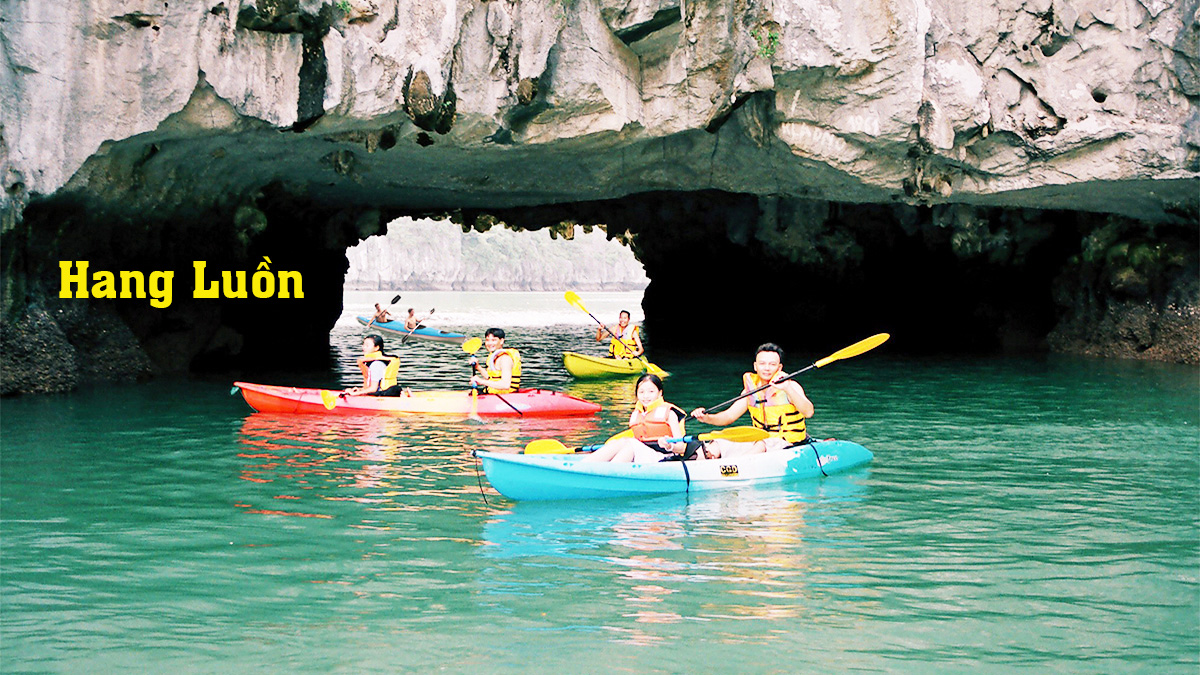 14:30 - 15:15: Sau khi tham quan Hang Sửng Sốt, Quý khách sẽ đến tham quan Hang Luồn - tại đây Quý khách có thể tự trải nghiệm chèo thuyền Kayak, hoặc ngồi thuyền nan do những người dân địa phương chèo, nếu may mắn Quý khách có thể bắt gặp những chú khỉ từ trên vách núi đá xuống tận mép nước đi kiếm ăn.
