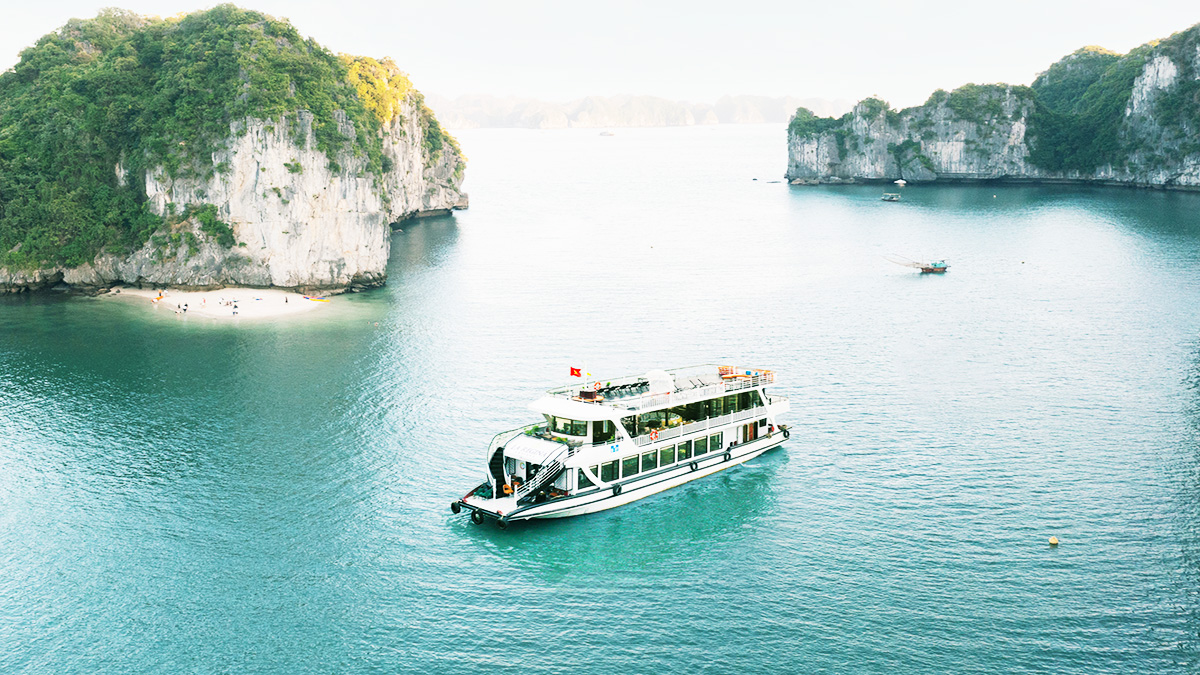14:45: Tham quan đảo TiTop, hòn đảo sở hữu cảnh sắc thiên nhiên hữu tình cùng bãi tắm tuyệt đẹp với hình dáng như một vầng trăng lưỡi liềm. Tại đây, Quý khách có thể tự do tắm biển hoặc trekking leo núi lên đỉnh TiTop để ngắm toàn cảnh Vịnh Hạ Long từ trên cao.