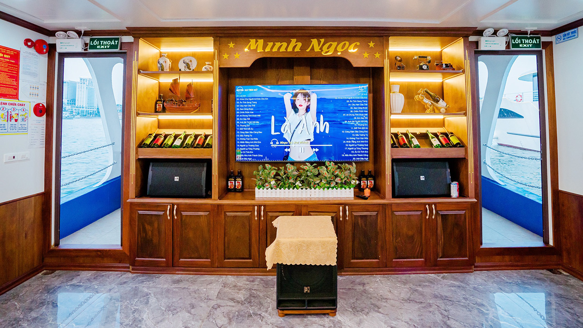 - Tàu được trang bị điều hòa, quạt điện, với hệ thống âm thanh, ánh sáng cực kỳ sôi động, đáp ứng mọi yêu cầu để tổ chức sự kiện, tiệc gala, sinh nhật của du khách khi thuê tàu thăm Vịnh Hạ Long.